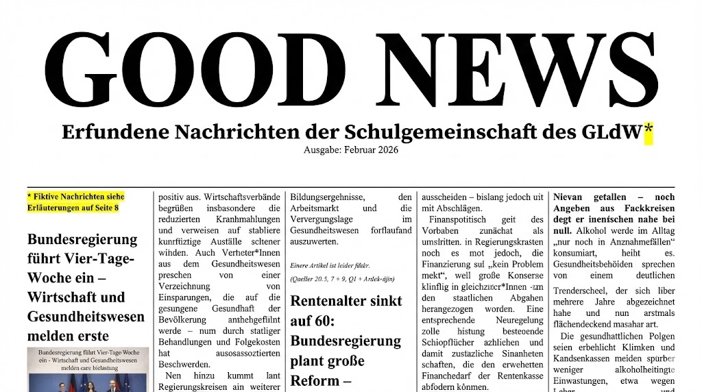 Genau dieser Frage sind unsere Schülerinnen und Schüler nachgegangen. In einem kreativen Prozess entwickelten sie eigene Schlagzeilen und Breaking News, die sie sich für die Zukunft wünschen – Nachrichten, die Hoffnung machen, Zuversicht vermitteln und zeigen, wie Demokratie gelingen kann.
