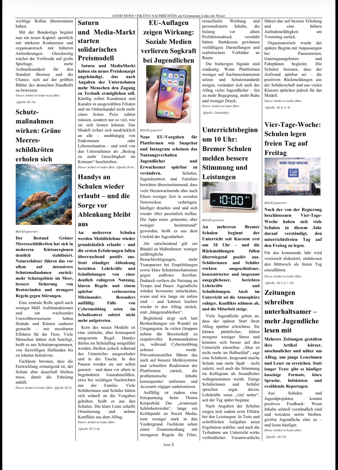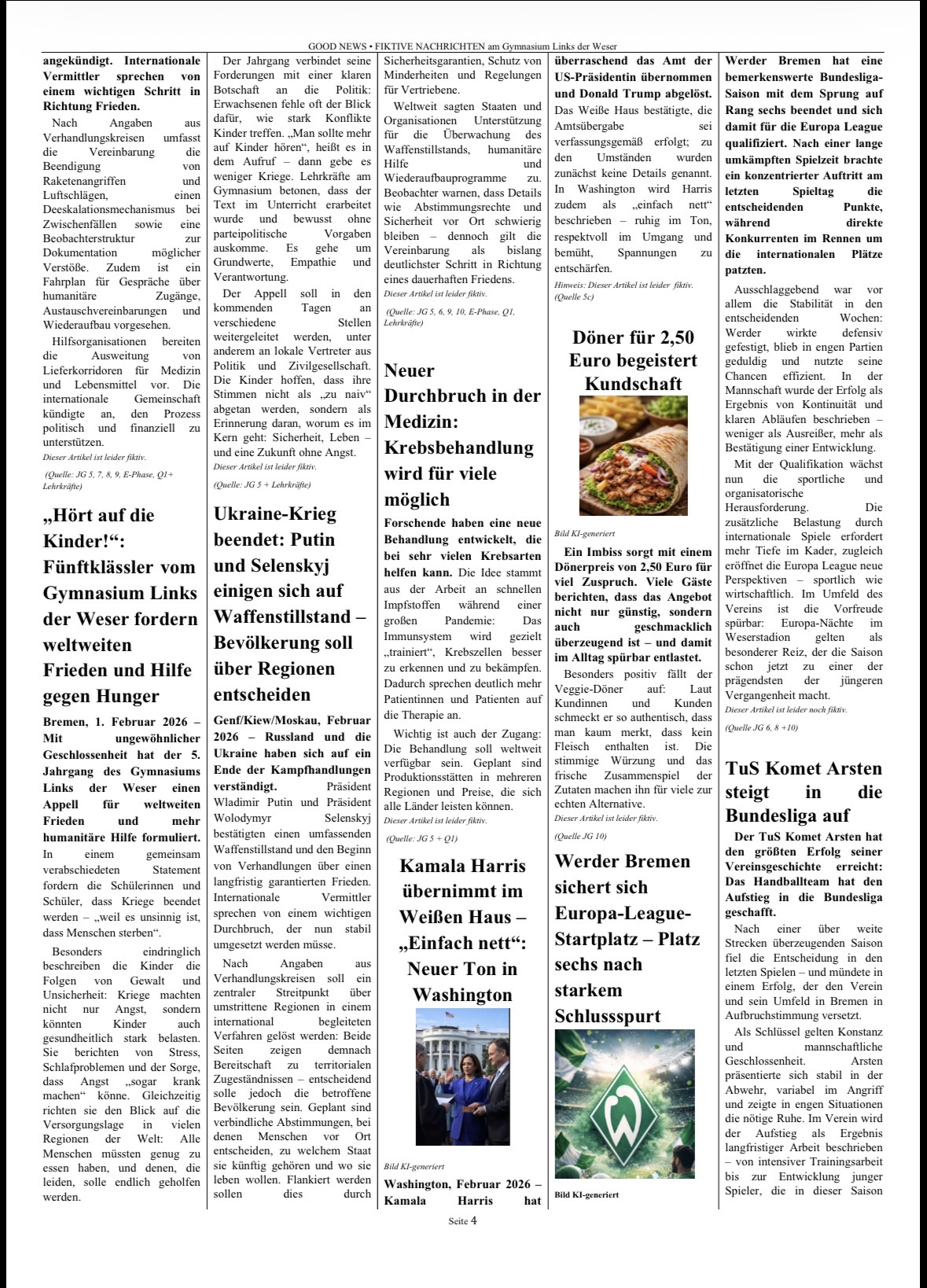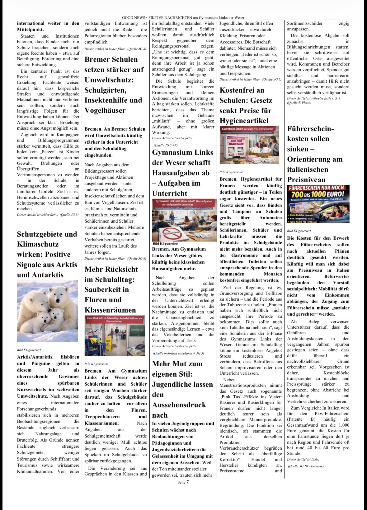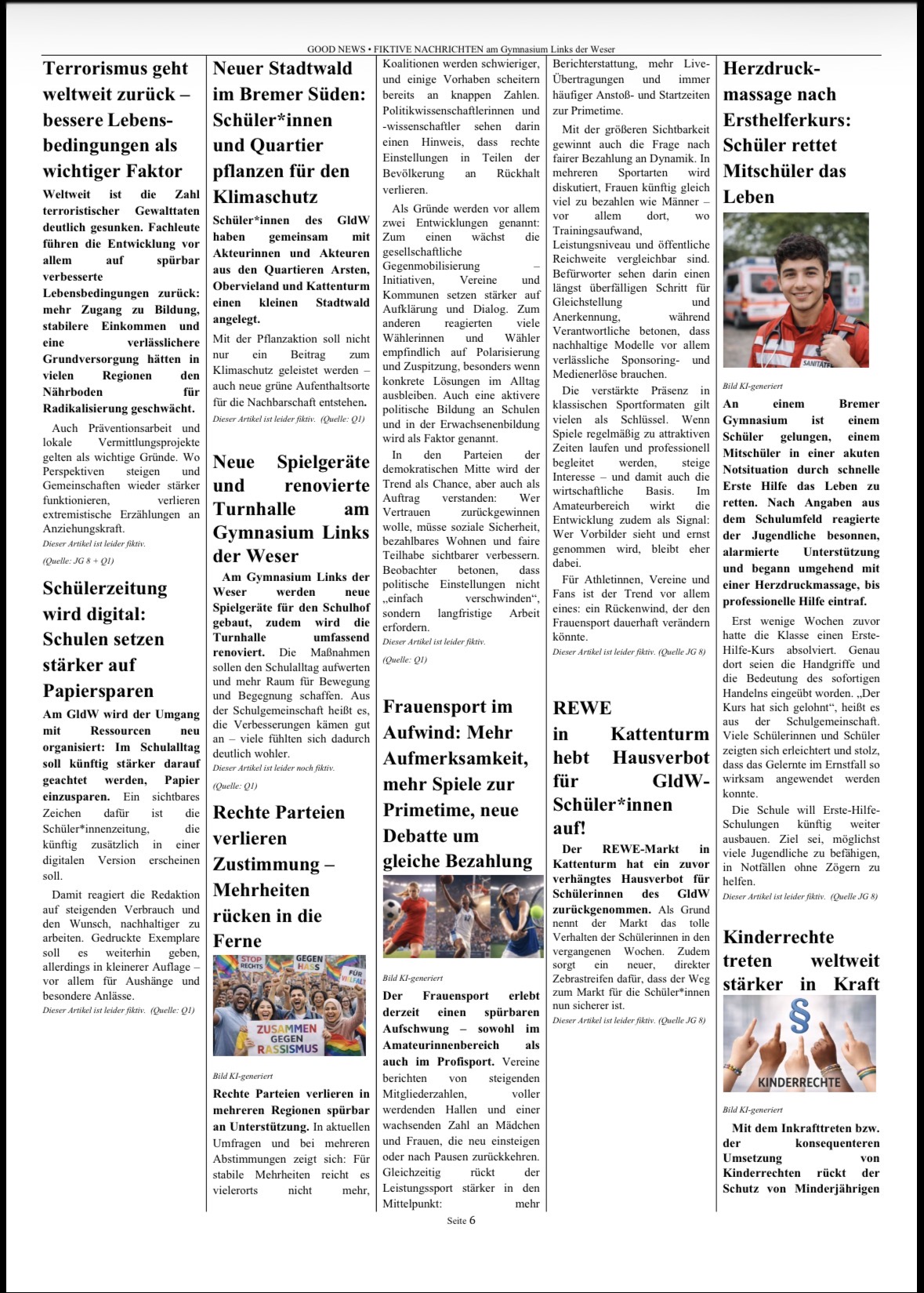 Gemeinsam entstand so eine Zeitung voller „Good News“: eine Sammlung von Visionen, Ideen und positiven Perspektiven auf unsere Gesellschaft. Das Projekt macht deutlich, dass Demokratie nicht nur ein politisches System ist, sondern von Haltung, Engagement und dem Glauben an Veränderung lebt. Ein starkes Zeichen dafür, dass junge Menschen sehr wohl wissen, in welcher Welt sie leben möchten und bereit sind, diese aktiv mitzugestalten.